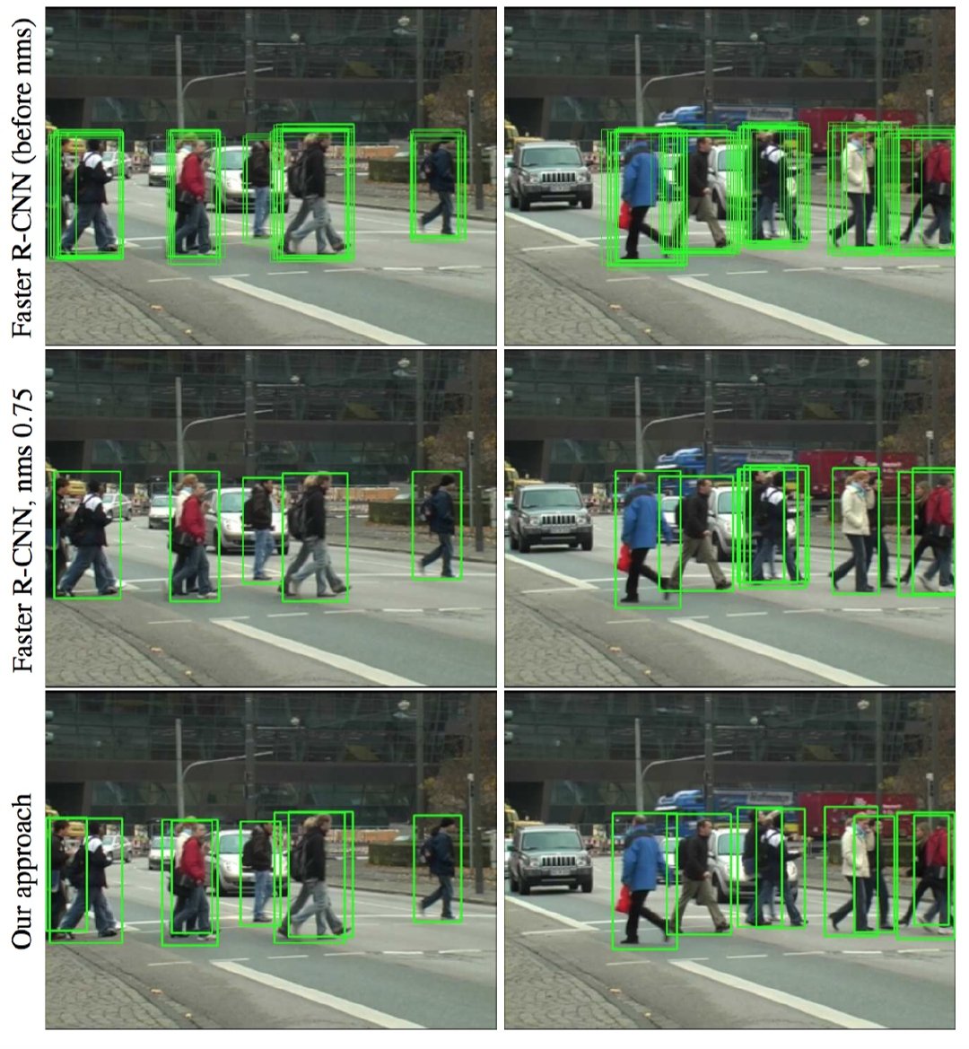 - 本文的工作与[25]有关,因为我们模型中的训练目标共同考虑了对多个对象实例的检测。主要区别在于我们的模型在测试时联合生成输出边界框,允许它正确检测强遮挡的对象。