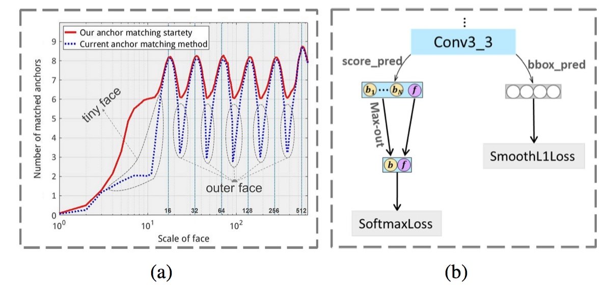 这样一来,对于 tiny face 和 outer face 效果显著,可以看到锚框匹配曲线从图(a)蓝色虚线提高到了红色实线。