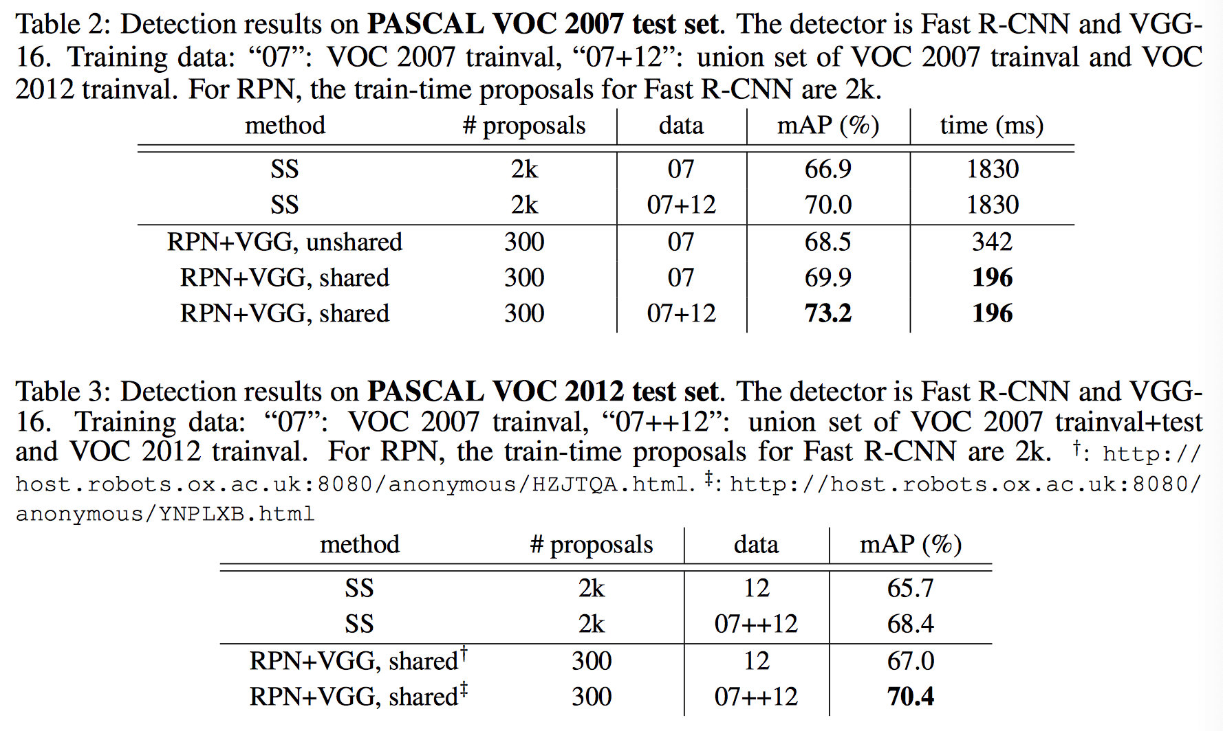 - RPN 通过端到端地训练得到,能够生成高质量用于 Fast R-CNN 进行目标检测的区域提议。