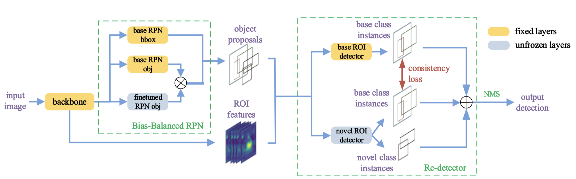 - Bias-Balanced RPN:两个RPN,base RPN 参数固定,finetuned RPN 只微调 objectness 分支,然后两个的 objectness 分支输出求 max 作为最终输出。